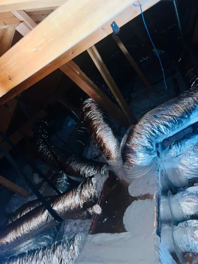 New flexible air ducts installed in attic by Andrew and Sons Air Duct Cleaning, LLC in Austin, TX